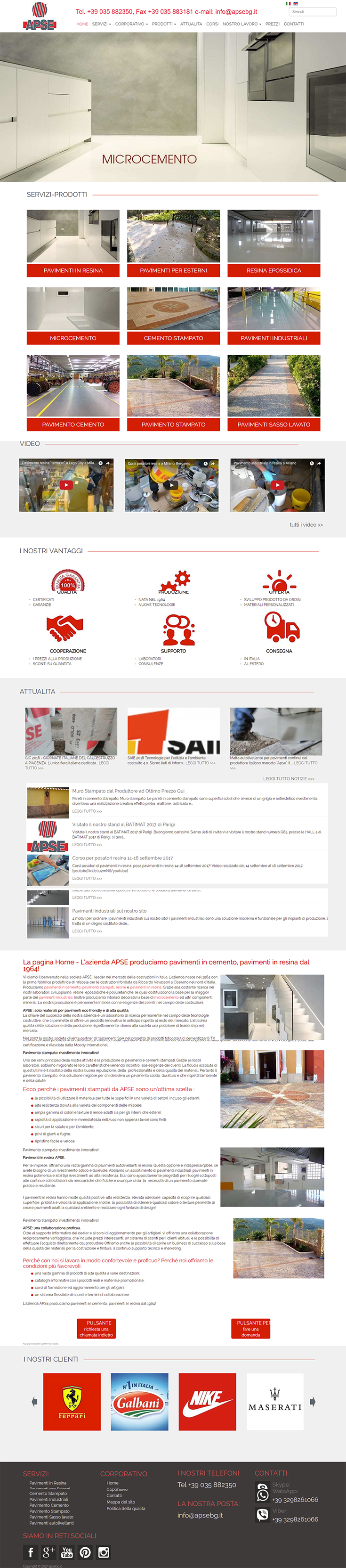 Il sito web è progettato per un produttore dei rivestimenti in microcemento e in resina APSE e per la promozione dei prodotti offerti.